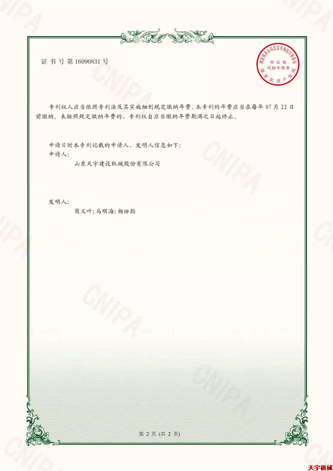 專利證書