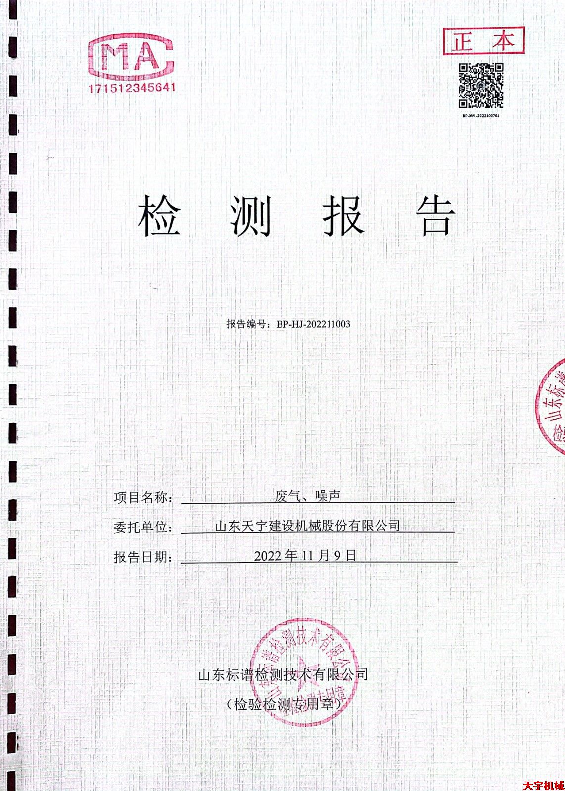 山東天宇建設(shè)機械股份有限公司廢氣、噪聲檢測報告公示